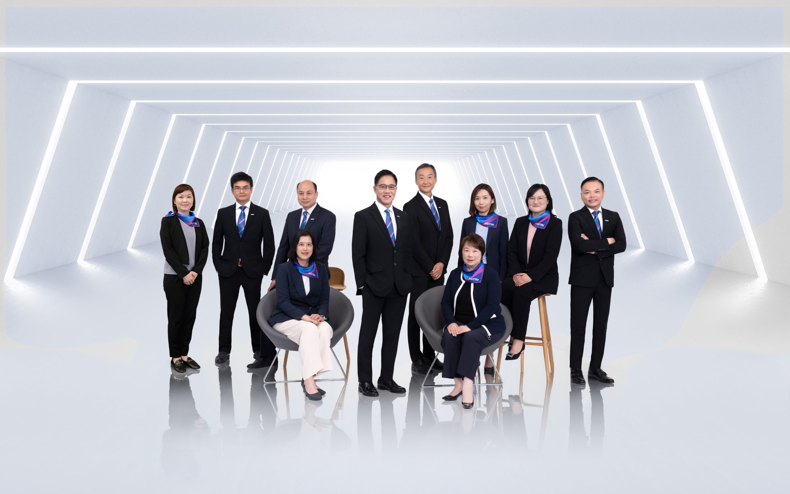 前排左起: 首席营运官姚惠娴女士、行政总裁孙耀达博士工程师,MH、 首席财务官容慧琪女士